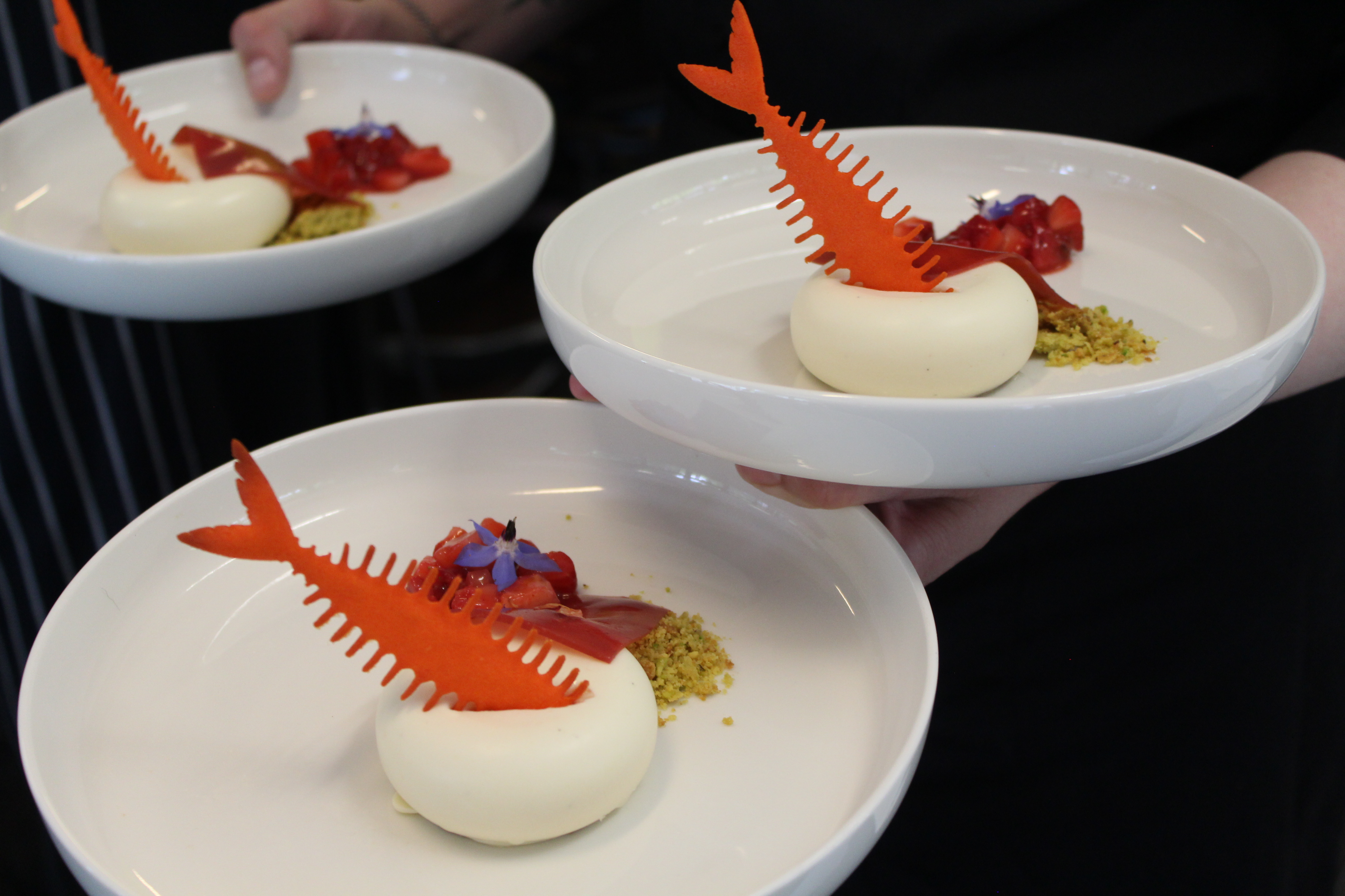 Naturally, salmon featured prominently on the celebration lunch menu: A selection of salmon starters, followed by a main of braised salmon in bouillabaisse broth with summer vegetables, followed by a lemon confit mousse dessert created by Ara patisserie tutor, Adele Hingston.